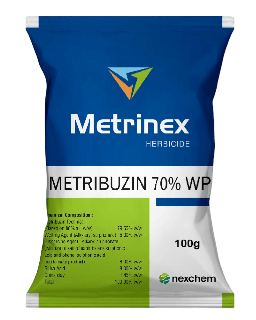 A selective herbicide with Metribuzin 70% WP that provides effective pre- and early post-emergence control of broadleaf and grassy weeds, helping crops grow cleaner and stronger.